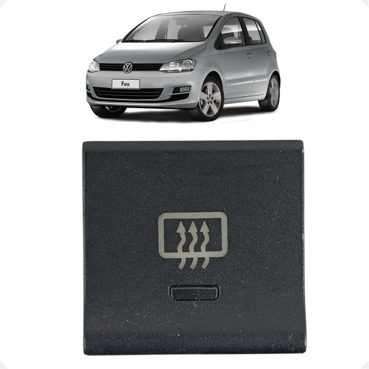 Interruptor de acionamento do desembaçador traseiro original Volkswagen. Este botão é essencial para garantir a visibilidade em dias de chuva ou neblina, ativando o sistema térmico do vidro traseiro. Com o design ergonômico característico da geração G2 do Fox, possui acionamento suave, acabamento texturizado e iluminação em LED, mantendo a integridade estética e funcional do painel do seu veículo.