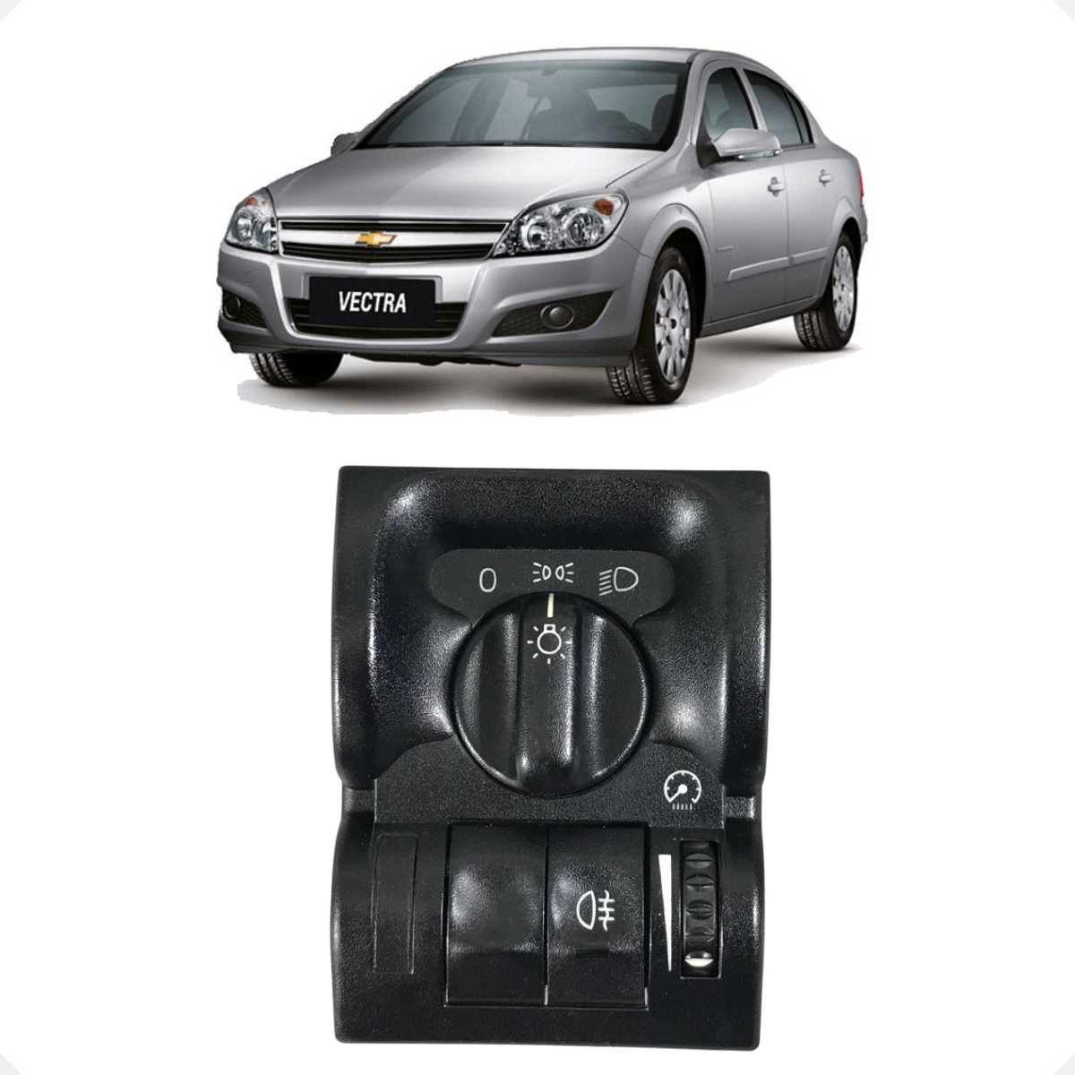 Botão/chave de farol Chevrolet Vectra, utilizado para acionamento do sistema de iluminação (farol/lanternas) conforme aplicação.