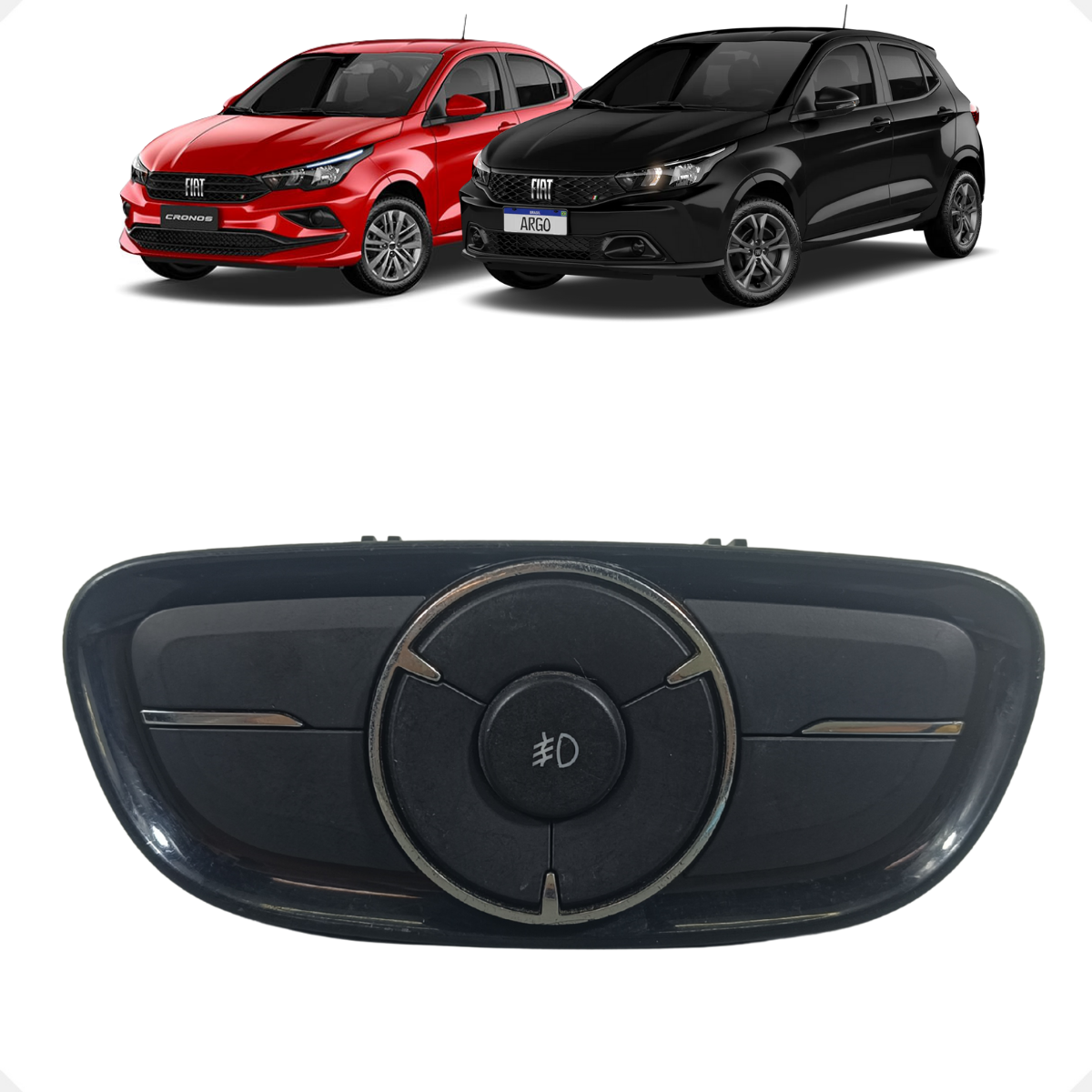 Interruptor original de acionamento do farol de neblina (milha) para a linha Fiat Argo e Cronos. Este botão integra o conjunto de comandos do painel central, oferecendo uma resposta tátil precisa e imediata. Essencial para a segurança em condições de baixa visibilidade, ele conta com o sistema de iluminação de status que indica quando o sistema está ativo, mantendo a harmonia visual e tecnológica do painel.