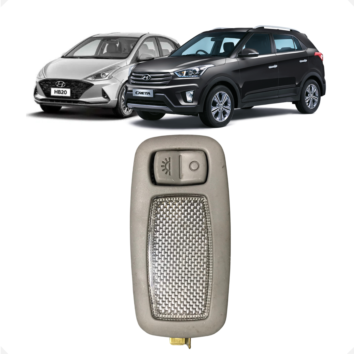 Interruptor de acionamento da luz de teto/cortesia original Hyundai. Este botão gerencia os modos de iluminação interna (On/Off/Door), permitindo o controle manual ou automático via abertura de portas. Fabricado com o padrão de qualidade Hyundai/Mobis, possui encaixe preciso no console de teto e contatos internos desenvolvidos para alta durabilidade, garantindo o funcionamento perfeito do sistema de iluminação de cabine.