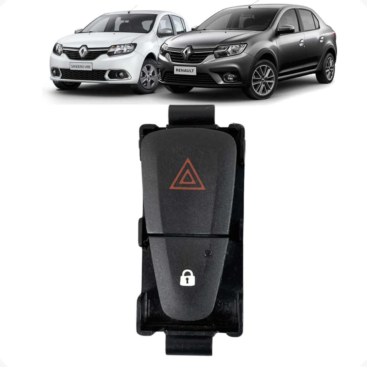Interruptor central duplo original Renault, integrando os comandos de Pisca-Alerta (Emergência) e Trava Elétrica das portas. Este componente de peça única é o centro de controle de segurança do painel, desenhado especificamente para a ergonomia da segunda geração (G2) da linha Sandero e Logan. Possui acionamento tátil suave, retroiluminação interna em LED e acabamento Black Piano ou fosco (conforme versão), mantendo a originalidade e o padrão estético do interior do veículo.