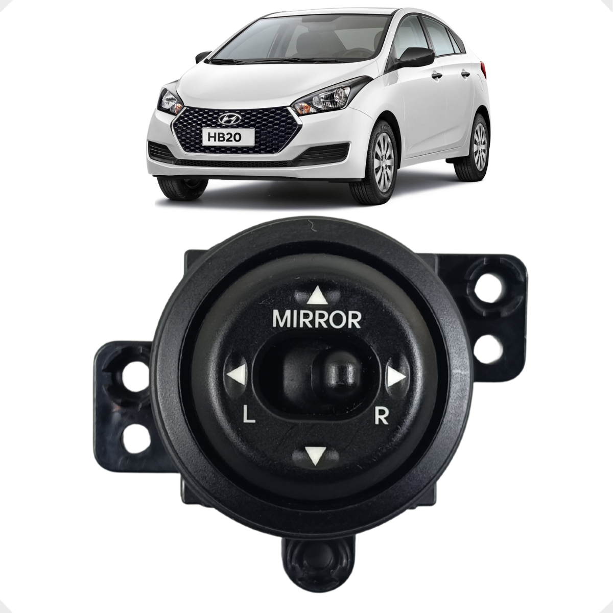 Joystick de comando original Hyundai para regulagem elétrica dos espelhos retrovisores externos. Este interruptor permite o ajuste preciso do ângulo de visão para ambos os lados (L/R) através de um seletor rotativo e direcional suave. Fabricado com o padrão de qualidade Hyundai/Mobis, garante que o motor do retrovisor responda imediatamente aos comandos, aumentando a segurança e o conforto ao dirigir.
