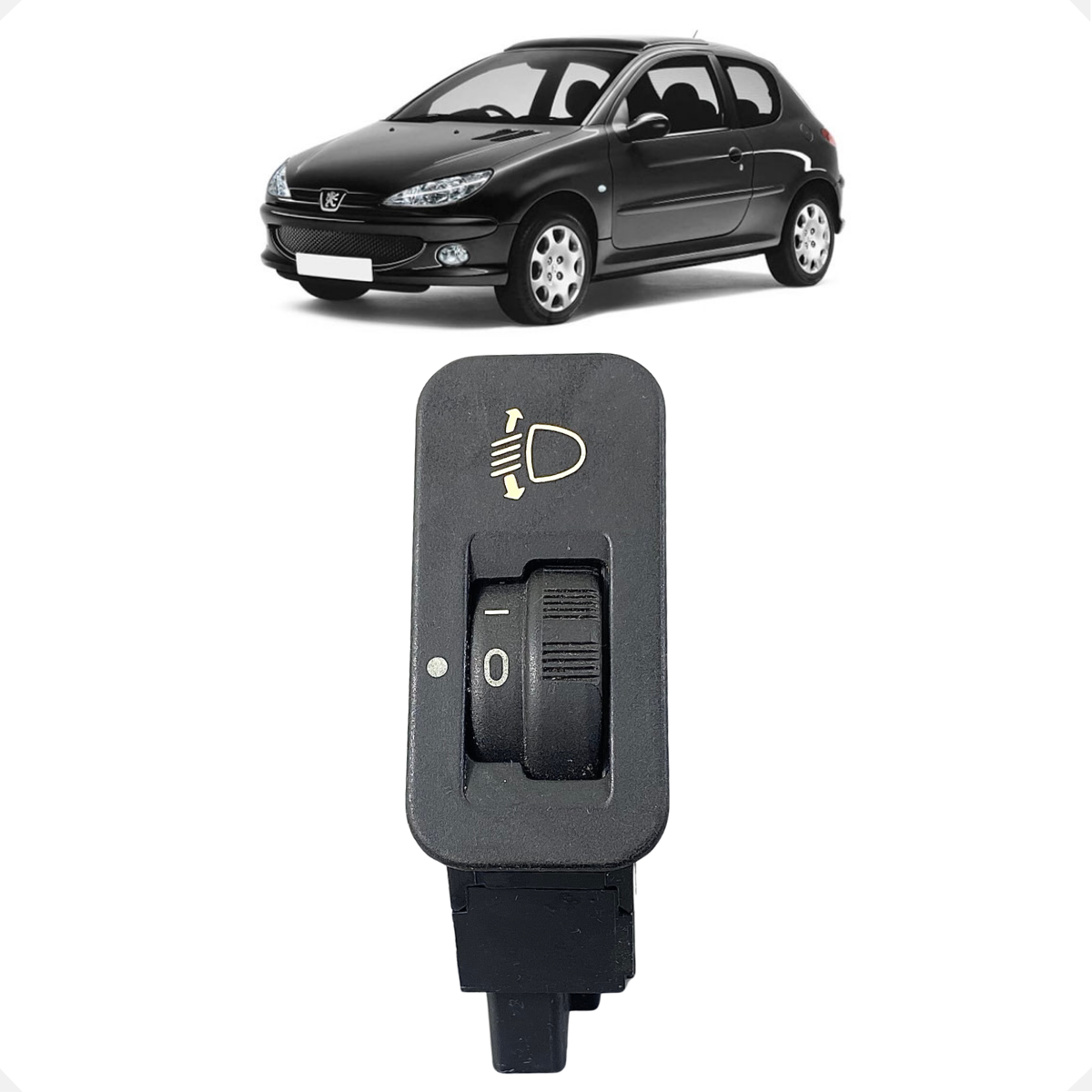 Botão de regulagem da altura do farol compatível com Peugeot 206 (2008). Peça de reposição testada e em perfeito funcionamento, fabricada conforme especificações originais para garantir ajuste preciso do facho e melhor visibilidade noturna. Ideal para manutenção ou substituição do sistema de iluminação do veículo.