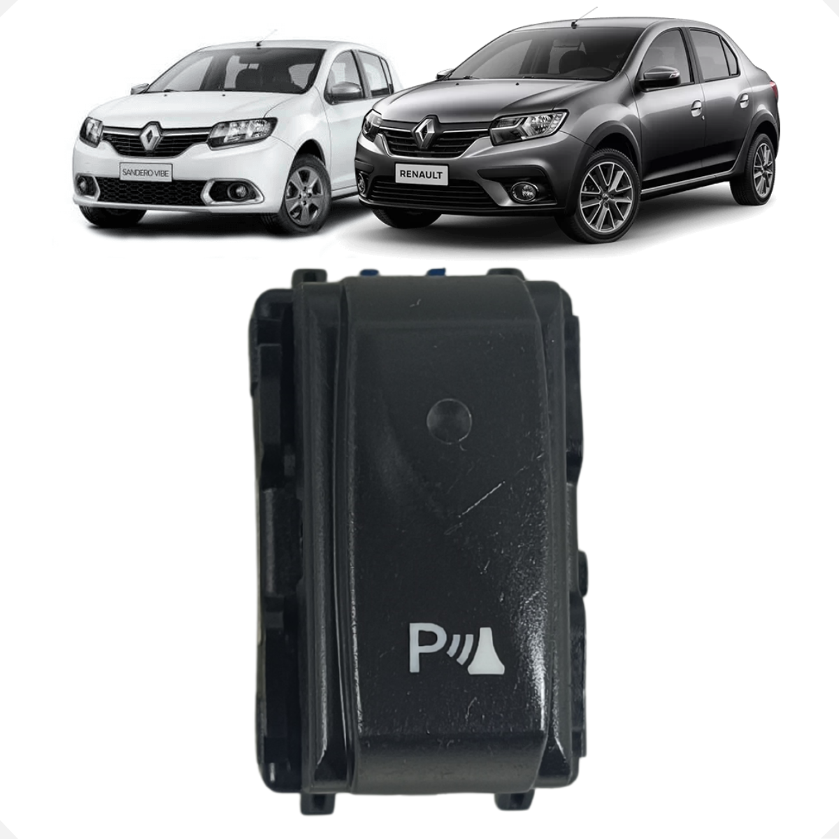 Interruptor de ativação/desativação do sensor de estacionamento original Renault. Este botão permite ao motorista habilitar ou silenciar o alerta sonoro de proximidade, sendo muito útil em situações de trânsito ou manobras específicas. Possui design integrado ao painel de botões secundários (lado esquerdo do motorista), mantendo a harmonia e funcionalidade dos sistemas de assistência à condução.