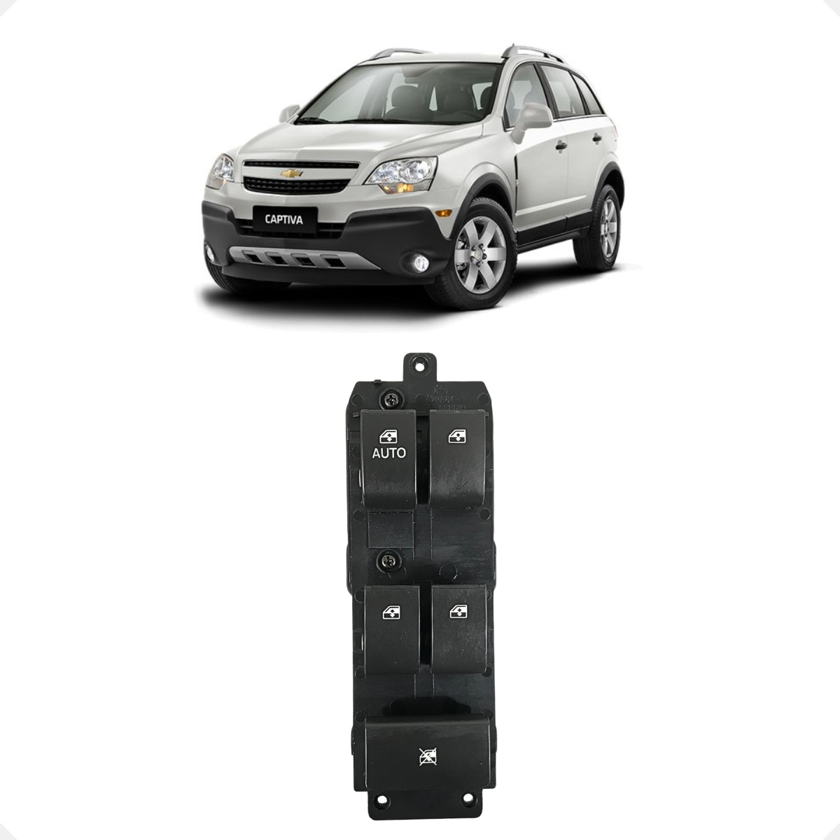 Interruptor master de comando dos vidros elétricos original Chevrolet para a Captiva. Este módulo central permite ao motorista o controle total de todos os vidros do veículo, além do bloqueio de segurança traseiro. Projetado com tecnologia One-Touch (conforme versão), oferece acionamento suave e iluminação interna em LED, mantendo a ergonomia e a funcionalidade original de fábrica.