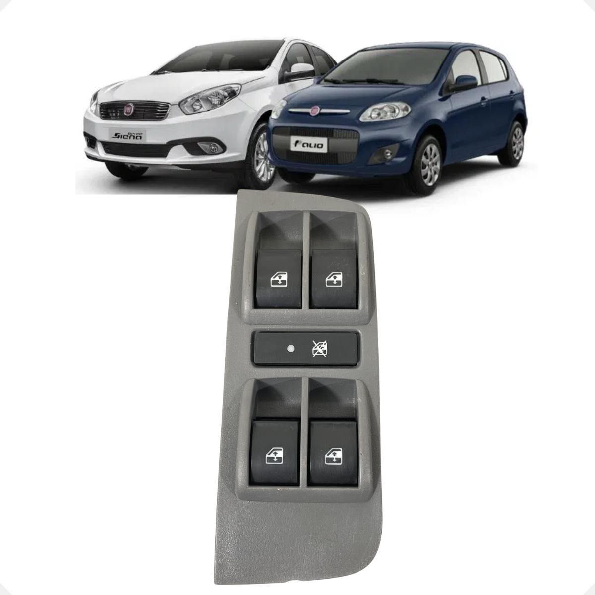 Botão/interruptor do vidro elétrico dianteiro, utilizado para acionamento do vidro conforme aplicação do veículo.