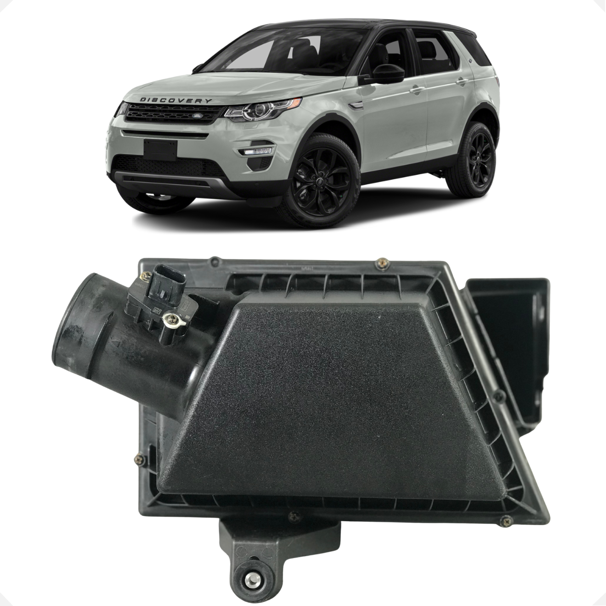 Caixa do filtro de ar original Land Rover, responsável por alojar o elemento filtrante e garantir a proteção e o fluxo de ar correto para a admissão do motor conforme aplicação do veículo.