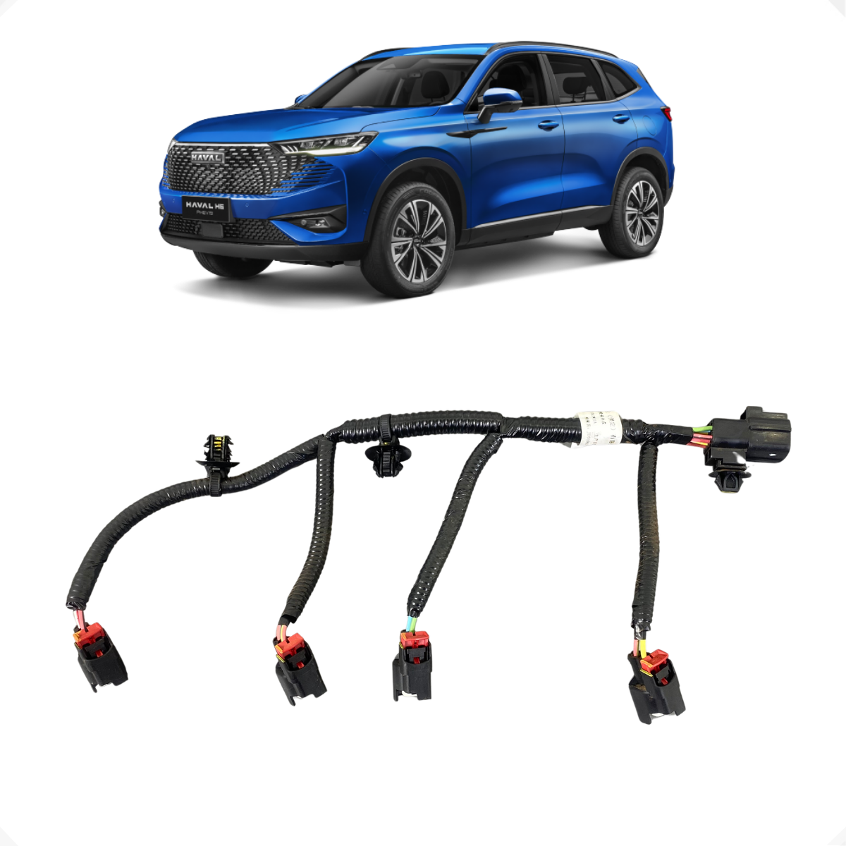 Chicote de bico injetor compatível com GWM Haval H6 1.5 HEV (2023–2024). Cabo elétrico de reposição projetado para garantir conexão segura e confiável entre os injetores de combustível e a unidade de controle do motor (ECU). Fabricado com materiais de alta resistência térmica e mecânica, oferece isolamento reforçado e proteção contra vibração, umidade e agentes químicos do compartimento do motor, proporcionando durabilidade e desempenho estável.