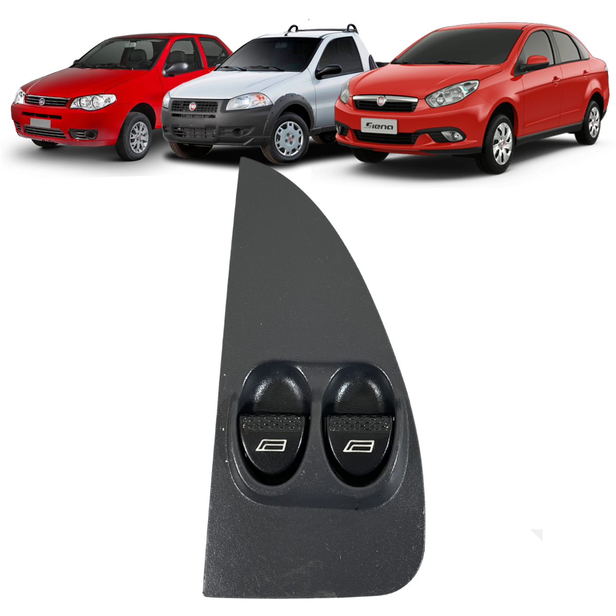 Interruptor master duplo de vidro elétrico original Fiat para a geração G2 (Fase II). Este comando, posicionado na porta do motorista, gerencia os dois vidros dianteiros com precisão. Possui o design característico da época, com botões robustos e iluminação interna, garantindo a originalidade do acabamento interno e o funcionamento elétrico confiável que apenas uma peça genuína oferece.