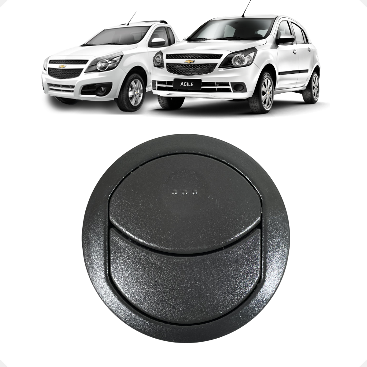 Grade difusora de ar original Chevrolet para a linha Agile e Nova Montana. Este componente permite o direcionamento preciso do fluxo de ar, essencial para a climatização eficiente da cabine. Com design circular característico e aletas articuláveis, oferece movimento suave e vedação correta quando fechado, preservando a funcionalidade e o design original do painel GM.