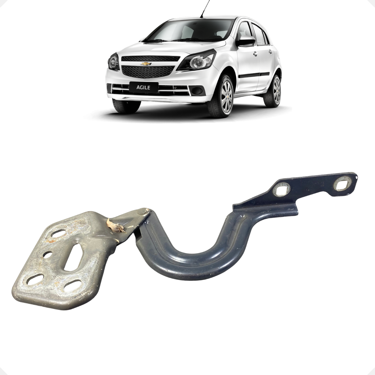 Dobradiça do capô dianteiro direito compatível com Chevrolet Agile 2011. Peça nova de alta qualidade, projetada para proporcionar encaixe preciso e funcionamento seguro do capô no lado direito do veículo. Fabricada com materiais resistentes e acabamento durável, garante alinhamento correto e fechamento firme, reduzindo folgas e vibrações indesejadas durante a condução.