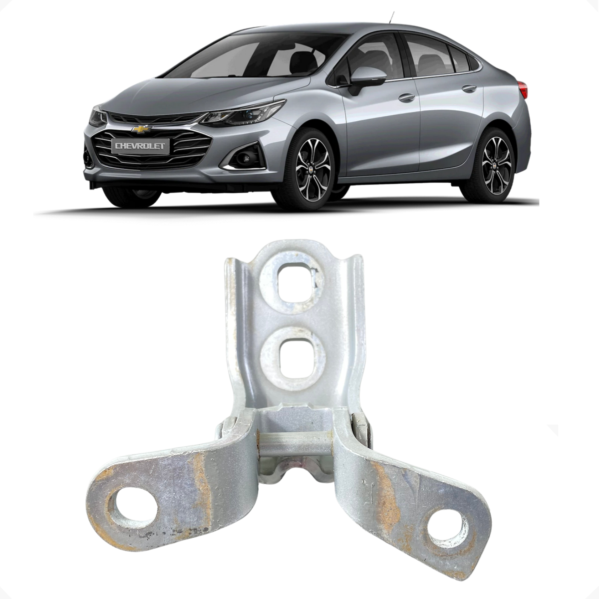 Dobradiça para porta traseira esquerda compatível com Chevrolet Cruze 2017 a 2022. Peça de reposição com dimensões e furação compatíveis com montagem direta, indicada para substituir dobradiças desgastadas, com folgas, ruídos ou desalinhamento, garantindo fechamento seguro, vedação correta e funcionamento suave da articulação da porta.