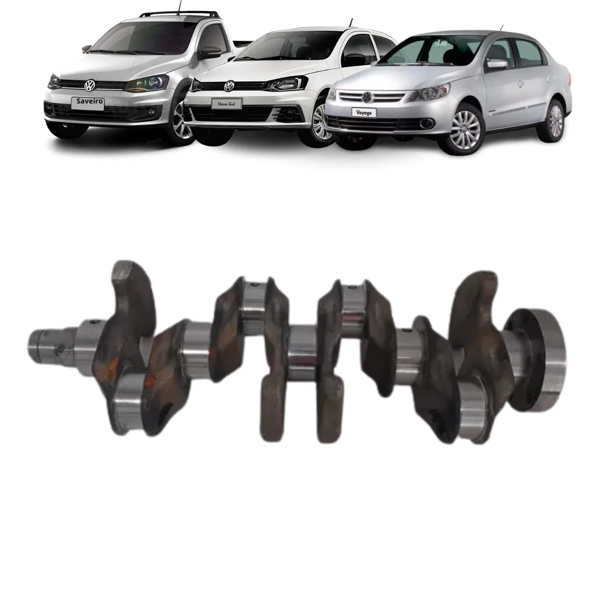 Eixo virabrequim compatível com motores Volkswagen 1.6 16V (família EA211), aplicado em Gol e Saveiro gerações G7 e G8, anos 2015 a 2022. Fabricado em aço de alta resistência com usinagem de precisão, o componente oferece equilíbrio dinâmico, resistência ao desgaste e funcionamento suave do conjunto motor.