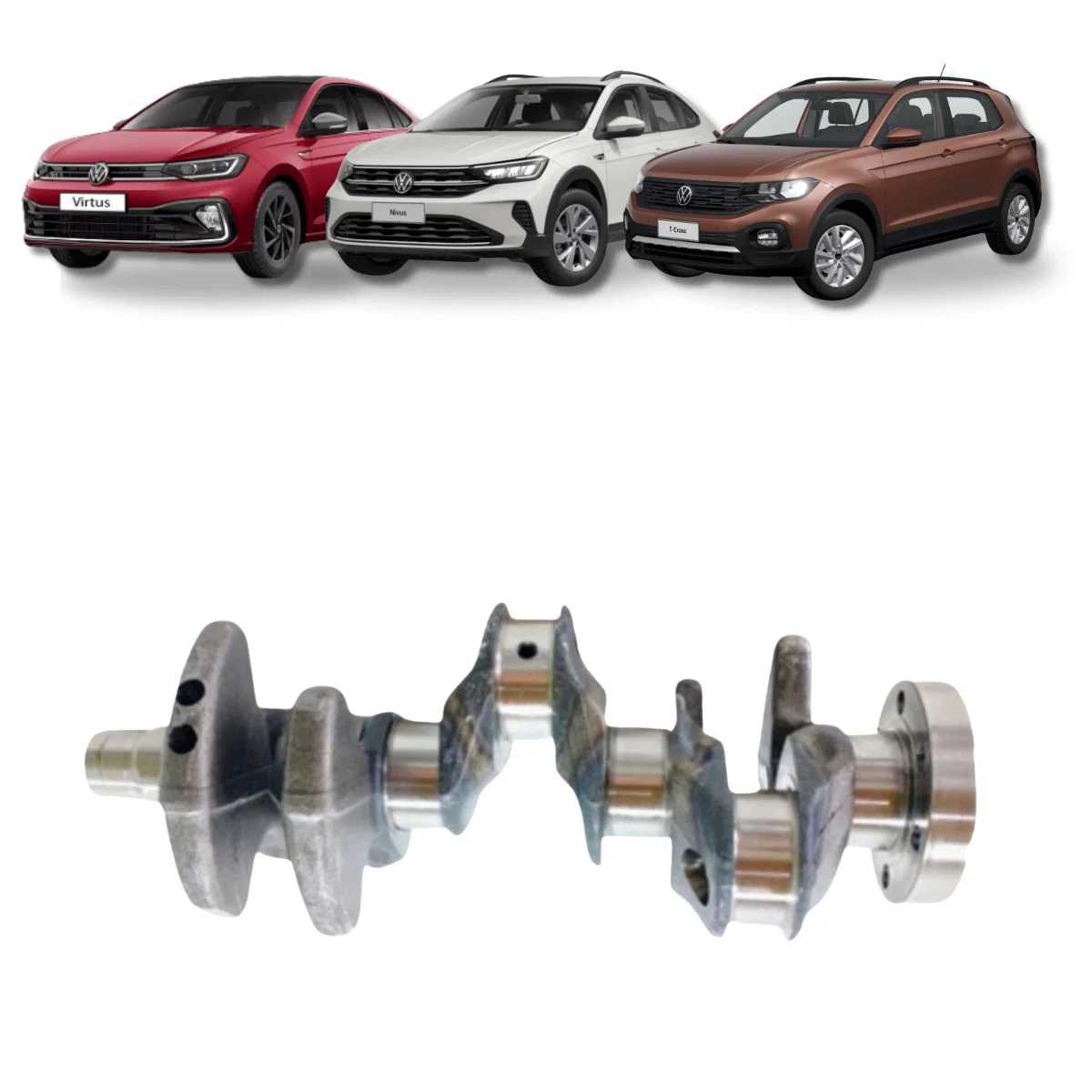 Eixo de virabrequim compatível com motores Volkswagen 1.0 12V 3 cilindros, indicado para modelos Nivus, T‑Cross, Polo, Virtus e Up (verificar aplicação por ano e motorização). Fabricado com usinagem de precisão e acabamento por tratamento térmico, este virabrequim oferece alta resistência ao desgaste, excelente durabilidade e equilíbrio dinâmico para operação estável do motor.