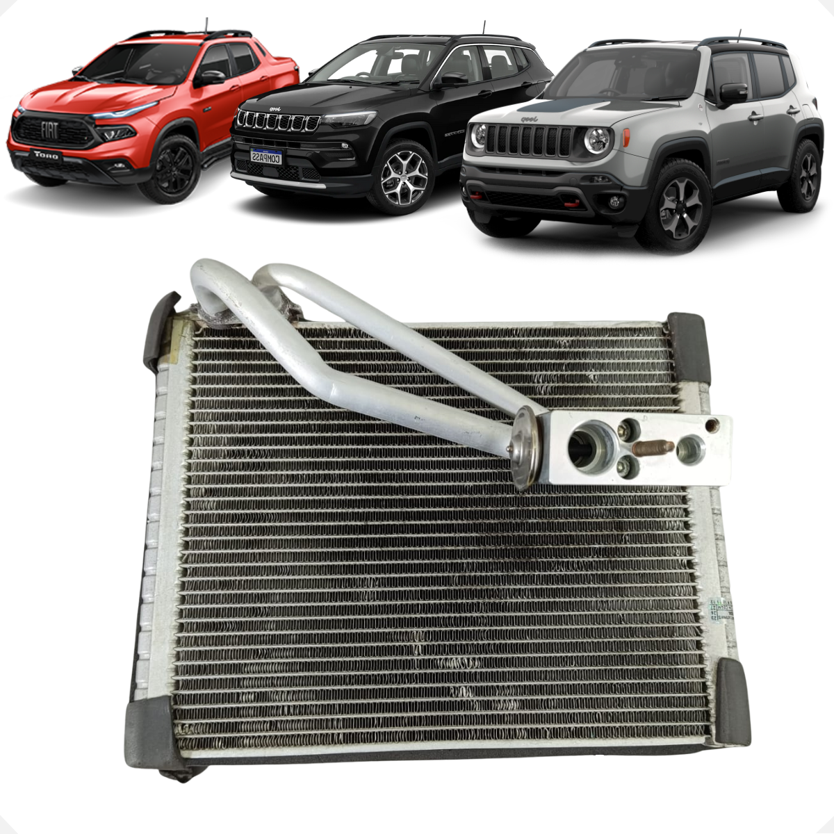 Evaporador de ar condicionado compatível com Fiat Toro, Jeep Renegade e Compass 2022 — peça de reposição original com Part Number 51918027 (NCM 84159010). Projetado para substituir com precisão o evaporador original, garantindo desempenho eficiente do sistema de climatização, refrigeração rápida e conforto térmico ideal no interior do veículo.