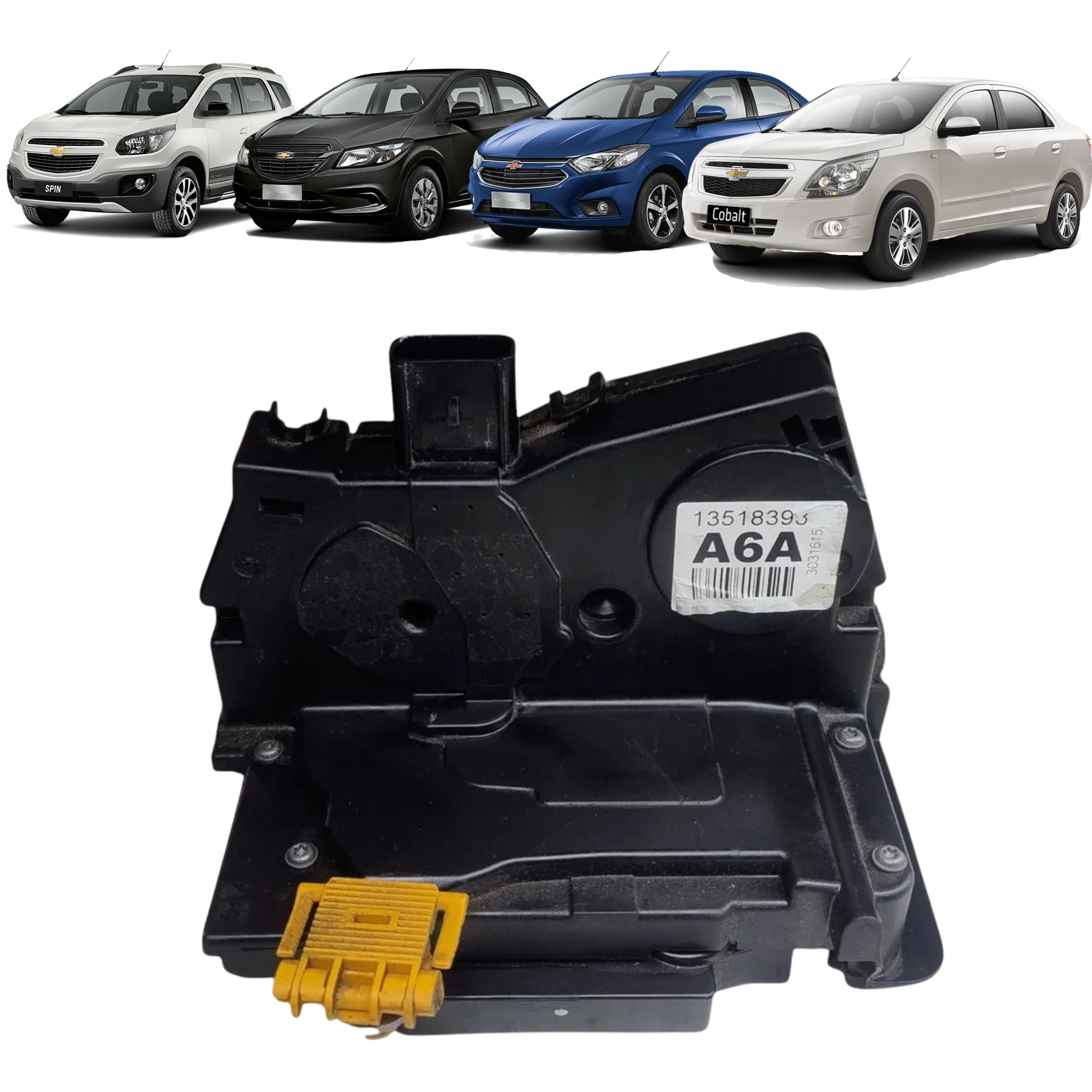 Fechadura elétrica para porta traseira esquerda compatível com Chevrolet Onix, Prisma, Cobalt e Spin (anos indicados). Peça de reposição testada e funcional, projetada para substituição direta sem necessidade de adaptações complexas. Ideal para veículos com acionamento da trava pela chave, proporciona travamento preciso, maior segurança e confiabilidade no fechamento da porta.