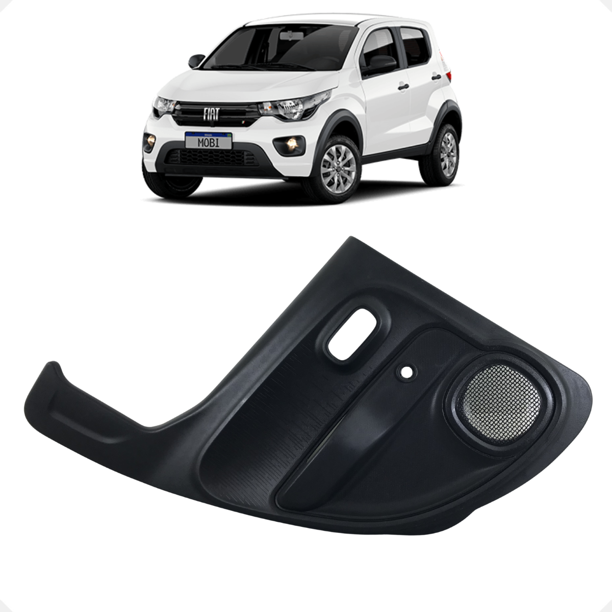 Forro de porta traseira esquerda, peça de acabamento interno da porta, utilizada para revestimento e fixação de componentes conforme aplicação.