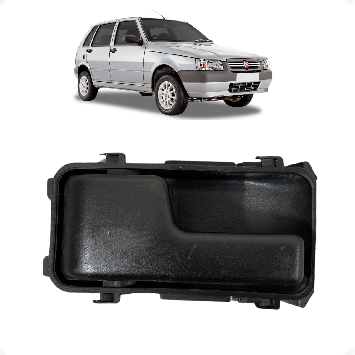 Gatilho de abertura interna da porta original Fiat para a linha Uno (Fase 1 e Mille). Peça clássica de reposição, fabricada em polímero de alta durabilidade para suportar o esforço mecânico diário. Com design funcional e robusto, esta maçaneta garante o acionamento leve da fechadura, preservando a originalidade e a praticidade do interior do seu Fiat.