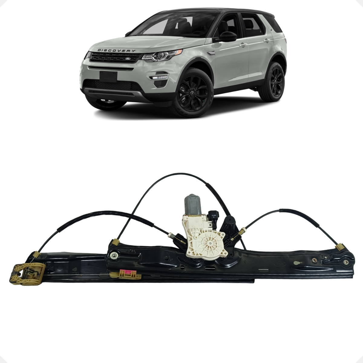 Máquina de levantamento do vidro elétrico dianteiro original Land Rover para a Discovery Sport. Este mecanismo de engenharia premium é responsável pela movimentação precisa, rápida e silenciosa do vidro, essencial para manter o conforto acústico e a segurança da cabine. Construída com guias reforçadas e cabos de alta resistência, garante o suporte ideal para o vidro em todas as posições, evitando vibrações e garantindo vedação total.