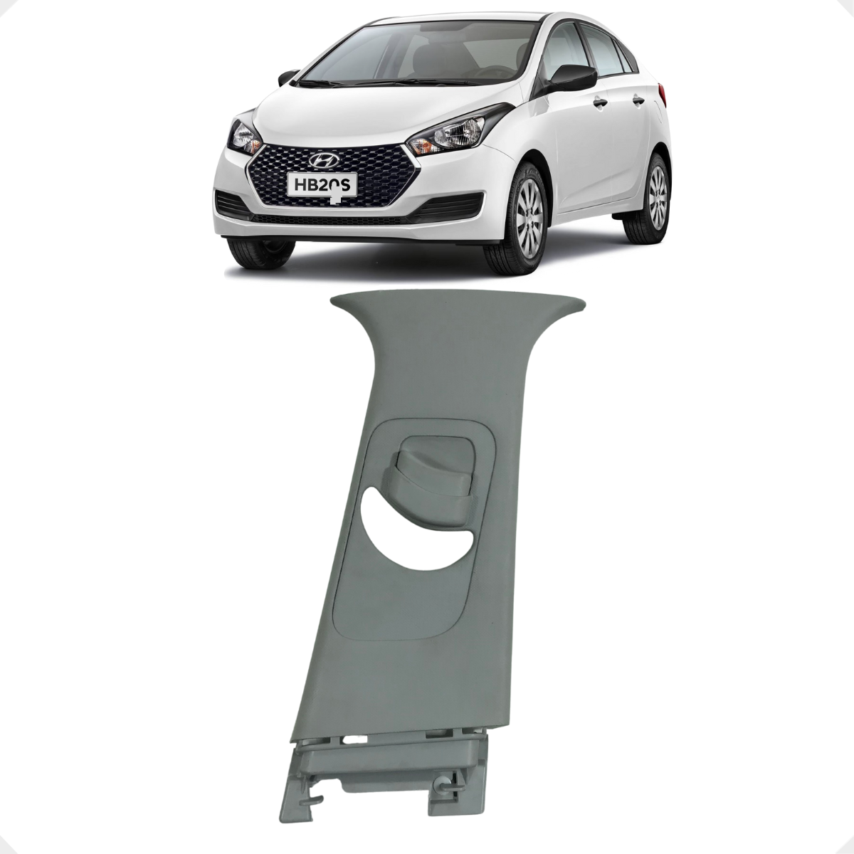 Moldura de acabamento interno da coluna central (Coluna B) original Hyundai para o HB20. Esta peça realiza o revestimento onde se aloja o mecanismo do cinto de segurança, garantindo a estética premium e o isolamento de ruídos vindos da carroceria. Por ser uma peça genuína, possui a textura e a cor exata do padrão de fábrica, com encaixe firme que evita estalos durante a condução.