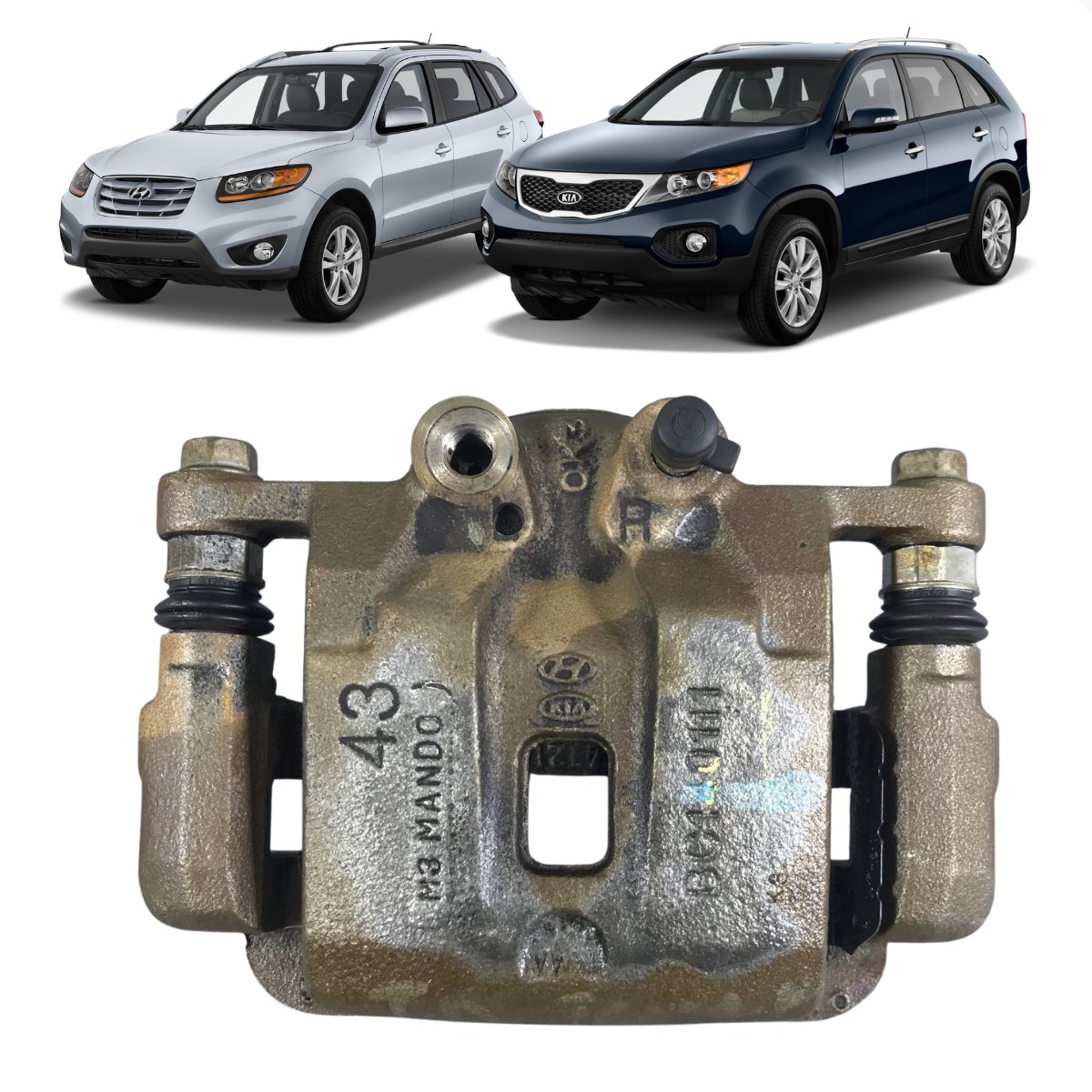 Pinça de freio traseira direita compatível com Hyundai Santa Fe (2010, 2011, 2012) e Kia Sorento (2010, 2011, 2012). Peça testada e em perfeito funcionamento, fabricada segundo especificações de qualidade do fabricante. Ideal para substituição direta, garantindo desempenho de frenagem seguro e durável.