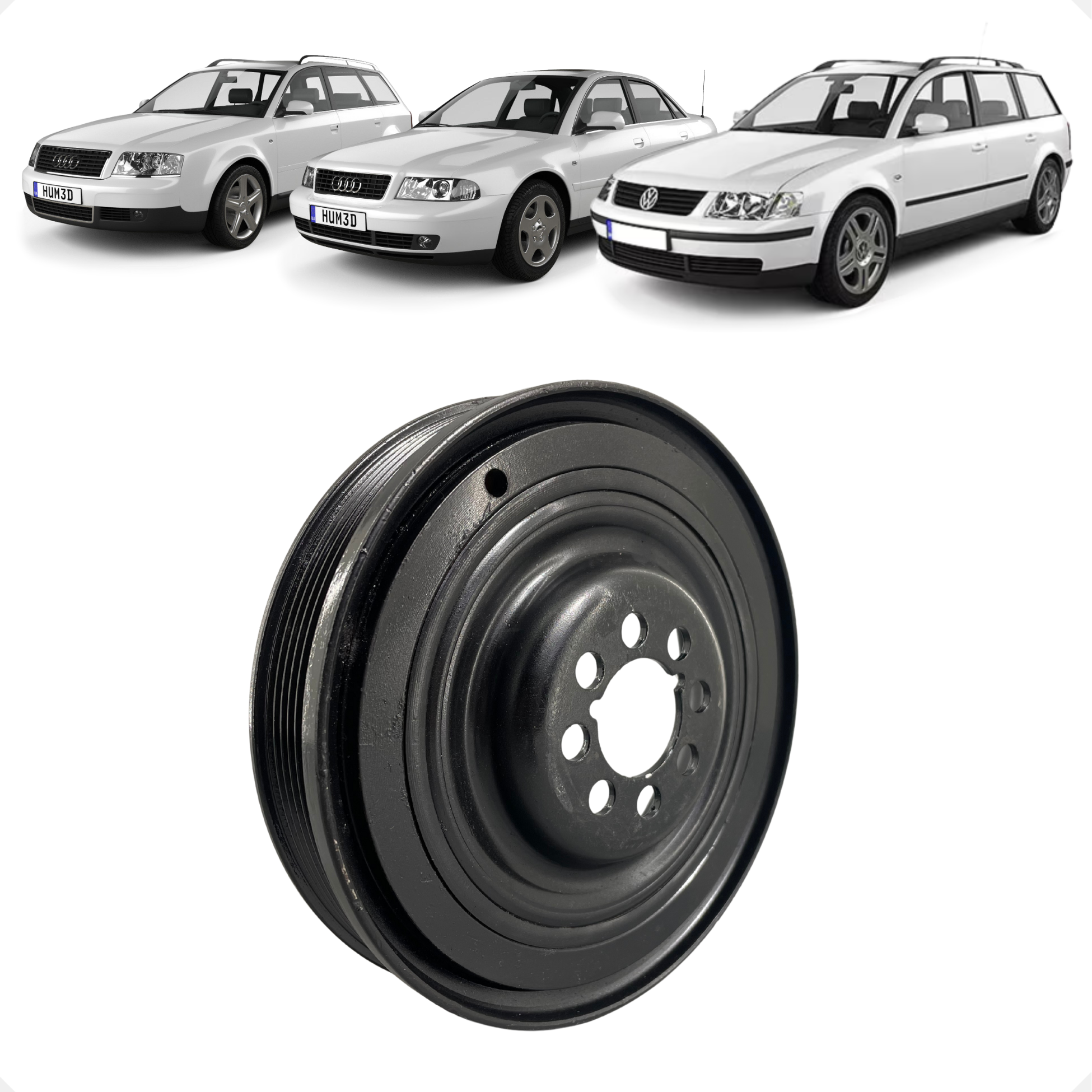 Polia do virabrequim compatível com Audi A4 B6 2.7 Turbo, Audi A6 2.7 Turbo e VW Passat 2.8 V6. Peça de reposição com acabamento de alta qualidade e construção robusta, projetada para manter o sincronismo do motor e reduzir vibrações e ruídos indesejados. Ideal para manutenção preventiva e reparos em motores V6 2.7 Turbo e 2.8 V6, garantindo encaixe preciso e desempenho confiável.