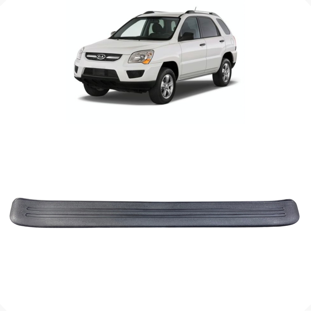Soleira de porta dianteira esquerda compatível com Kia Sportage 16V 2009 (Ref. 85873/83-1F000). Peça de reposição fabricada em material resistente à abrasão, projetada para proteger a borda da porta contra desgaste por atrito, impactos leves e uso diário. Encaixe conforme especificações originais, garantindo instalação precisa e acabamento alinhado ao padrão de fábrica.