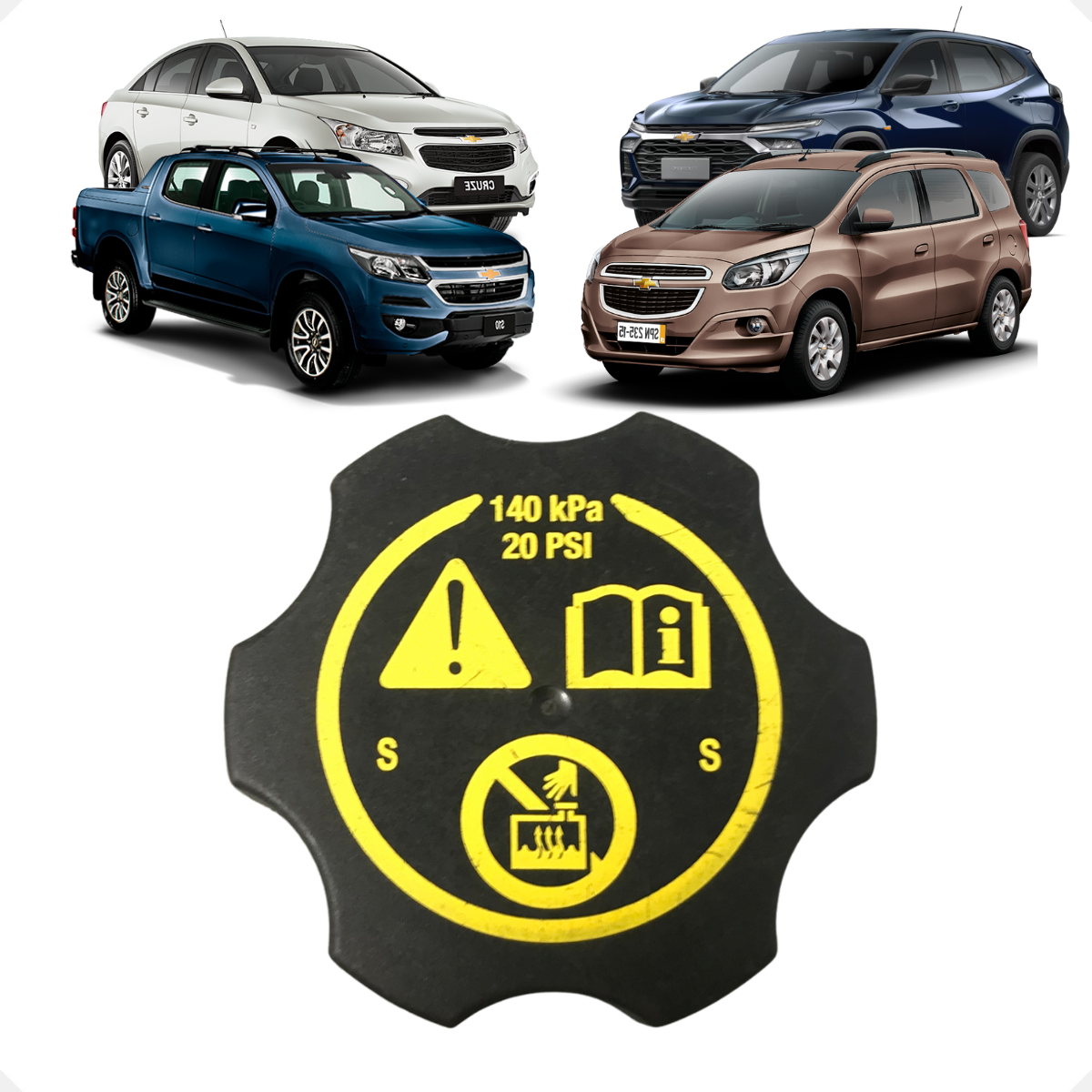 Tampa do reservatório do radiador compatível com veículos GM Cruze, Tracker, Spin, S10 e Onix (2013–2018). Peça nova e testada, fabricada conforme especificações OEM (Part Number 13502353), garantindo vedação eficiente do reservatório, manutenção da pressão do circuito de arrefecimento e prevenção de vazamentos do líquido de arrefecimento. Produzida em material resistente a temperaturas elevadas e variações térmicas, oferece durabilidade e proteção ao sistema de arrefecimento do motor.